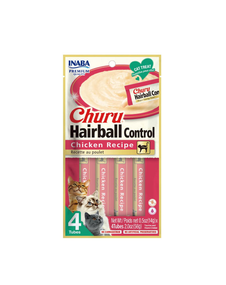 - Churu hairball control receta de pollo 4und de tubos, 56g $2.990