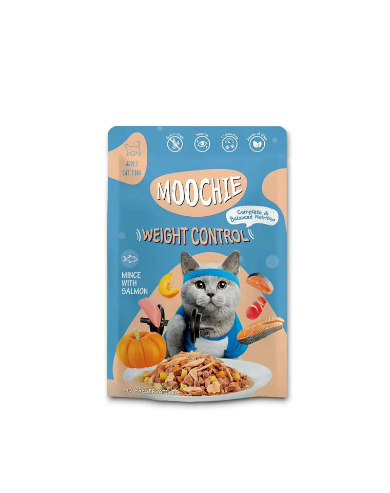- Moochie pouch gato carne salmón 70g control peso $1.490
