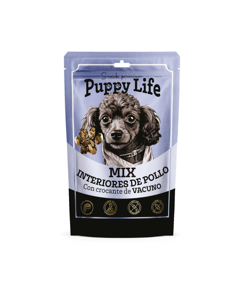 4. Puppy Life snack interiores de pollo con crocante de vacuno 65g $4.600