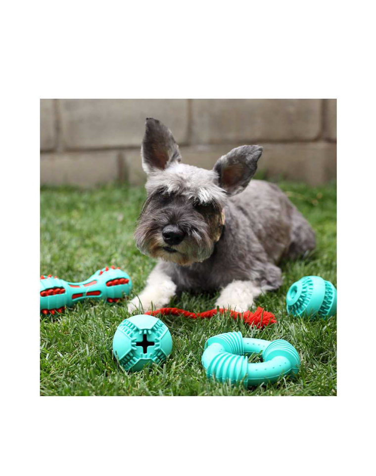 BRNX Juguete Perro Pelota con Cuerda, Ayude a su perro a gastar sus ilimitadas reservas de energía con el juguete para perros BRNX. Este juguete masticable de larga duración le proporcionará horas de juego a usted y a su amigo peludo. Está fabricado con caucho totalmente natural, lo que hace que rebote, zigzaguee y salte en el suelo cuando se lanza, despertando los instintos naturales de persecución de su perro. El juguete con forma de anillo ultraduradero tiene protuberancias añadidas, para que su perro disfrute masticando, a la vez que le ayuda a mantener sus dientes y encías sanos. Además, es una forma interactiva de pasar más tiempo con su mejor amigo. Medidas: 8 cm