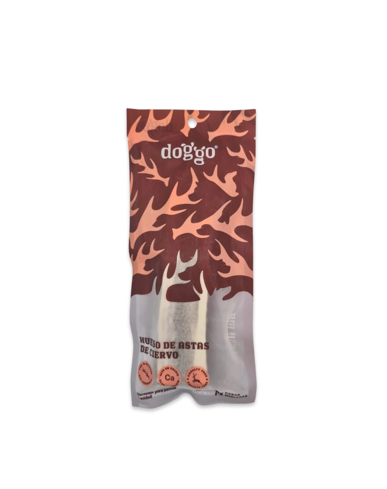Doggo Astas de Ciervo M para perros que pesan entre 8 a 18kg. Es el juguete perfecto para el rey de la casa, es un producto 100% natural, no contiene aditivos, tiene un alto contenido de Calcio y otros nutrientes, no se astilla y lo más relevante es que el hueso se obtiene del proceso de desmogue: que es un proceso natural, no industrial. El desmogue es un proceso natural donde los ciervos los botan naturalmente las astas todos los años para darle paso a unas nuevas cornamentas.