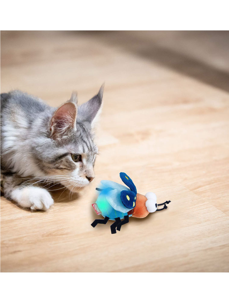 GiGwi Luciérnaga Shining Friendz es un juguete para gatos interactivo que se ilumina al jugar. Este juguete para gatos, que cuenta con un cuerpo de LED que se activa con el movimiento, se ilumina con el tacto de tu gato y lo incita a perseguirlo y saltar. Si eso no es suficiente, el cuerpo de felpa suave y relleno de hierba gatera será suficiente para volver loco a tu gato.