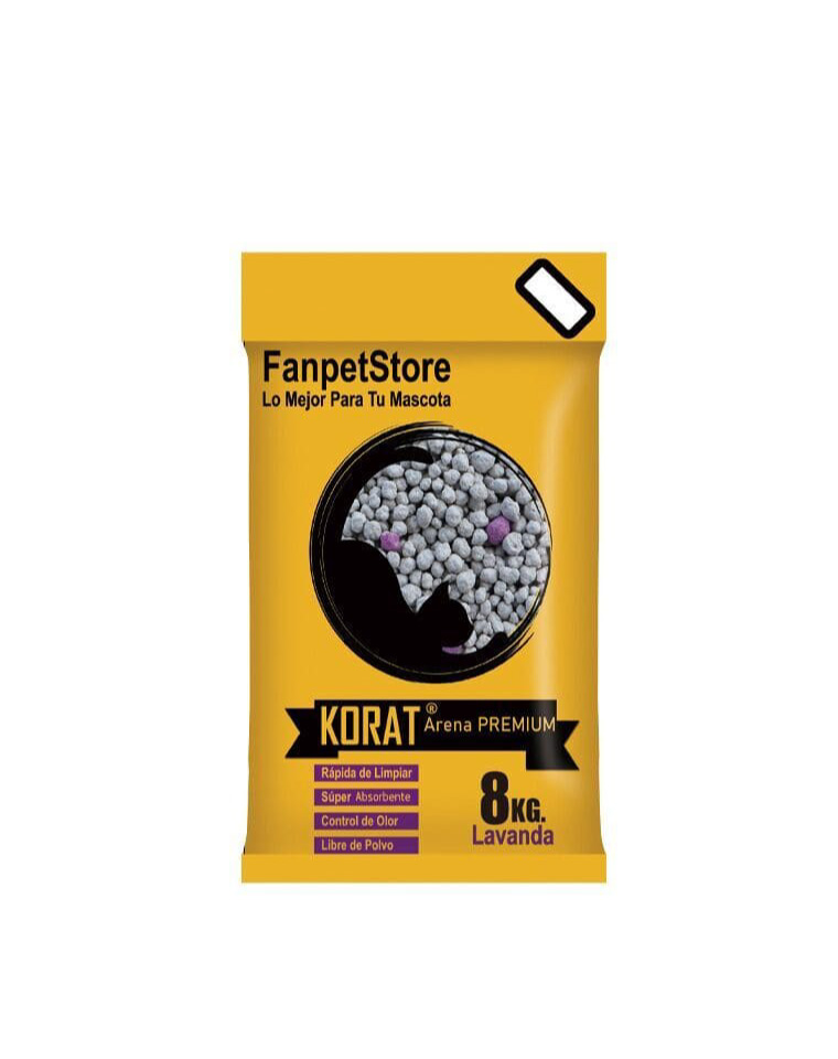 Korat 8kg Arena Sanitaria Lavanda es ultra-aglutinante y contiene un bajo nivel de polvo gracias a su fórmula a base de bentonita de sodio.