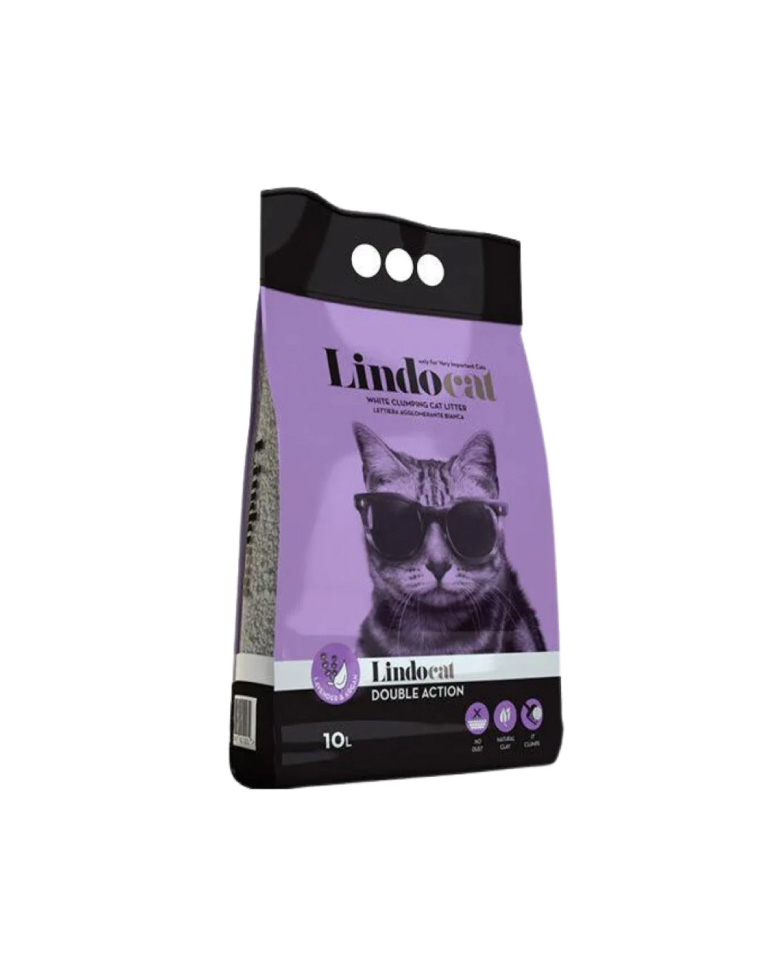 LindoCat Arena Lavanda 10kg Double Action para gatos con aroma a lavanda. Esta arena se caracteriza por una doble acción: