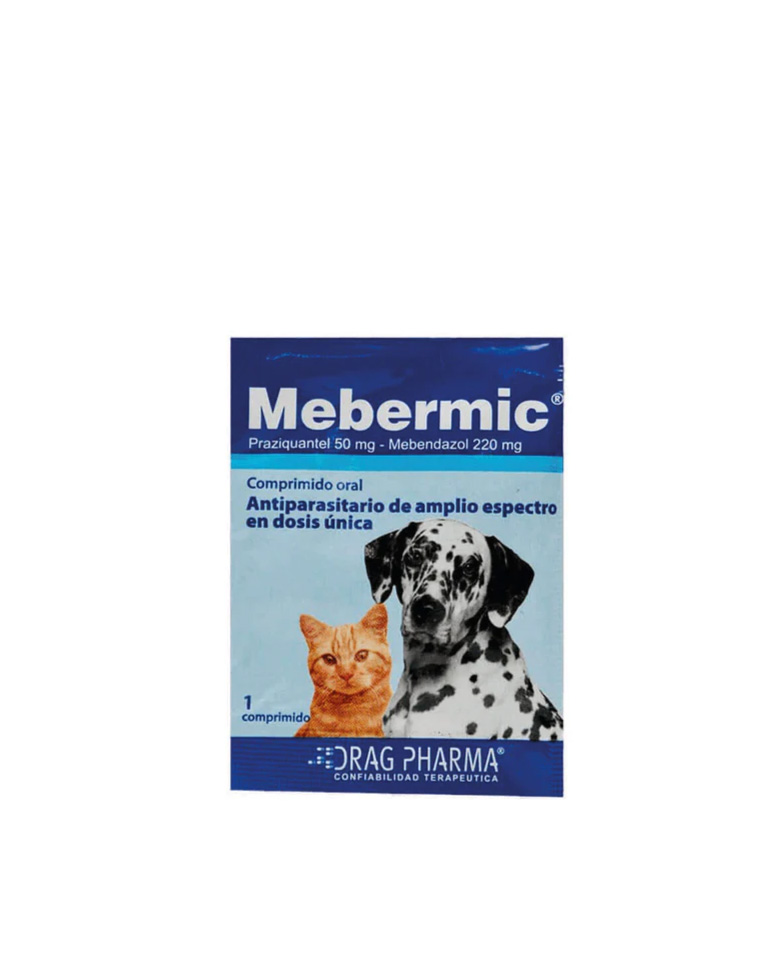 Mebermic Antiparasitario Interno Perros y Gatos es un antiparasitario de amplio espectro en dosis única. Sirve para el tratamiento de todas las parasitosis internas (Nematodos y Cestodos) de perros y gatos (excepto Trichuris vulpis).