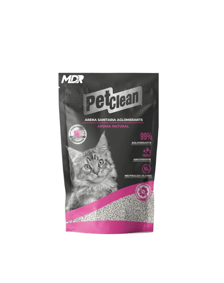 PetClean Arena Aroma Natural arena sanitaria es absorbente y aglomerante y está pensada en las necesidades de cada gato. Contiene aroma natural libre de fragancia, eliminando los olores mediante la neutralización del amonio producido en la orina y permitiendo el fácil retiro de las heces gracias a su gran capacidad de absorción y aglutinamiento.