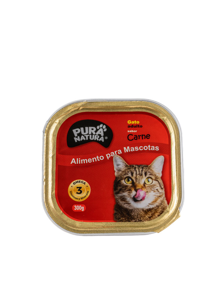 Pura Natura Paté Gato Carne 300g es un alimento húmedo con textura suave y cremosa. Es altamente palatable y con un buen aporte de humedad. Es un alimento natural en base a carne de vacuno + vitaminas y minerales (**). ¡Un sabor y aroma que tu mascota no podrá resistir!