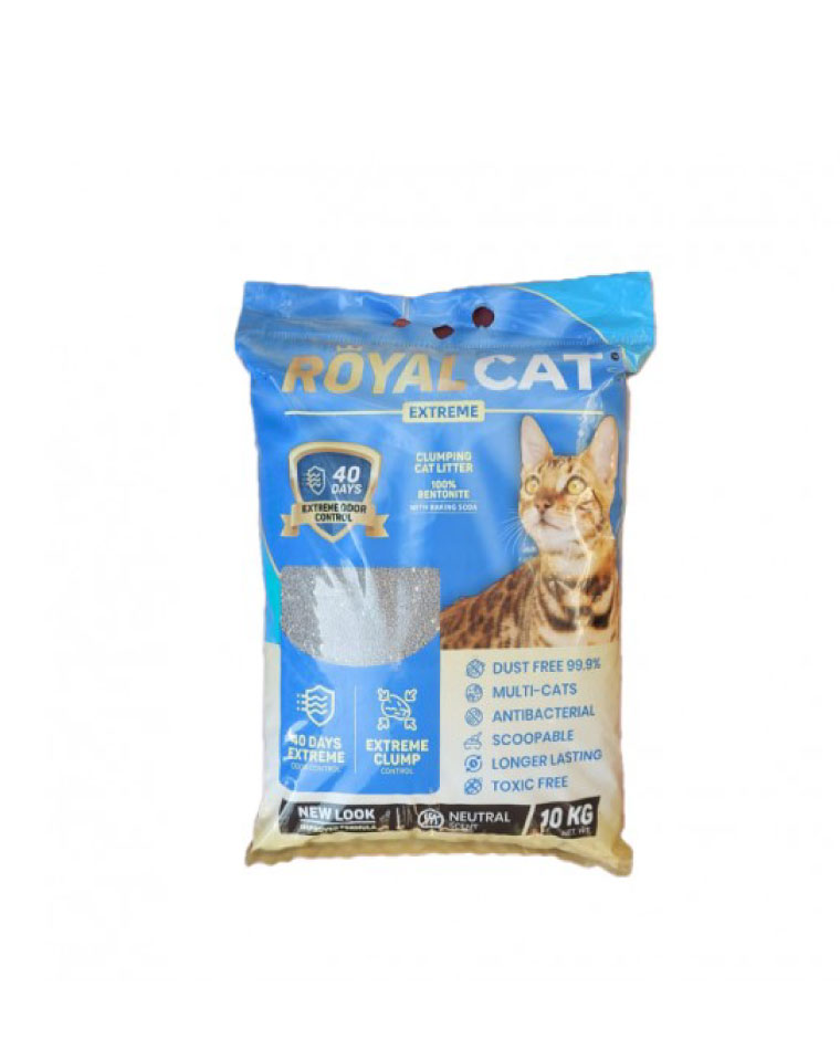 - Royal Cat Extreme con tecnología de micropartículas extremas de la bentonita, combinada con el bicarbonato de sodio, son la mezcla más efectiva para controlar los malos olores hasta por 40 días, manteniendo tus ambientes más frescos y saludables.
