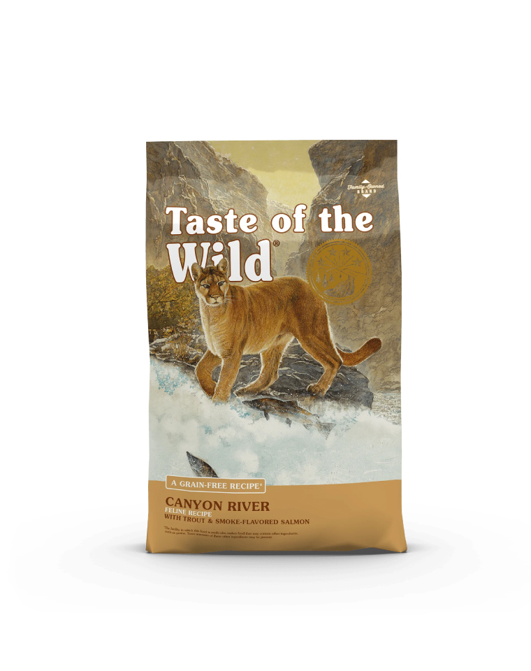 Taste of The Wild Gato Canyon River ¿Qué gato salvaje no ansía el sabor de una cena de pescado? Hecho con trucha y salmón ahumado, la única fuente de proteína animal en esta fórmula es el pescado, por lo que puede ser una buena opción para gatos con alergias o sensibilidades a los alimentos. Las verduras y frutas llenas de nutrientes proporcionan antioxidantes para ayudar a mantener un sistema inmunológico saludable y una vitalidad general, tal como lo concibió la naturaleza.