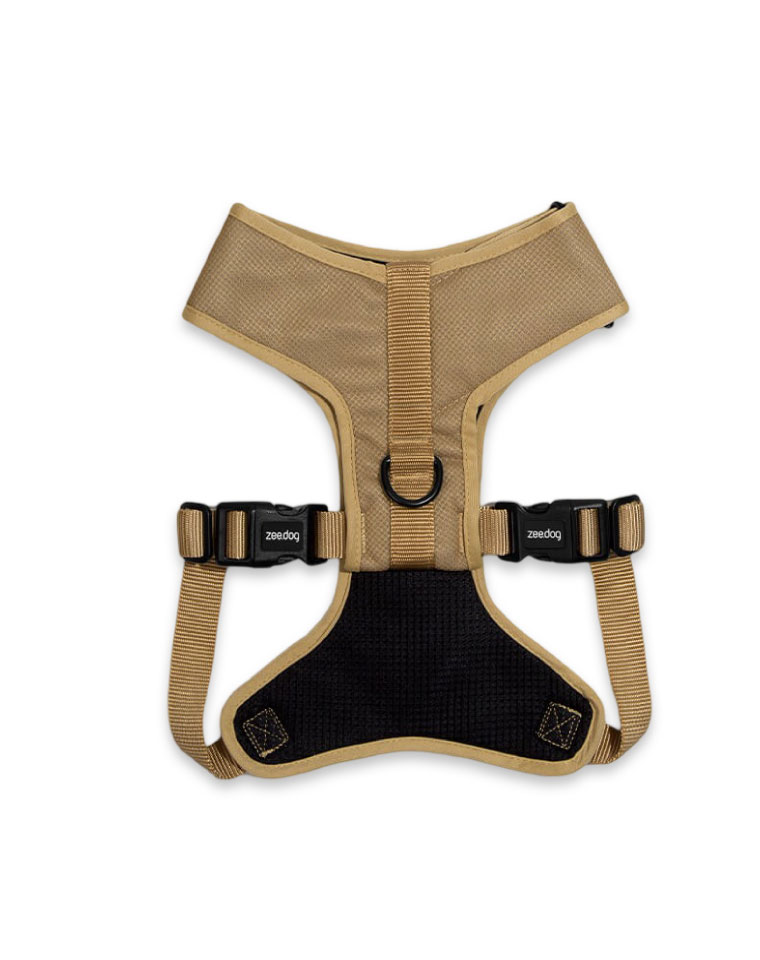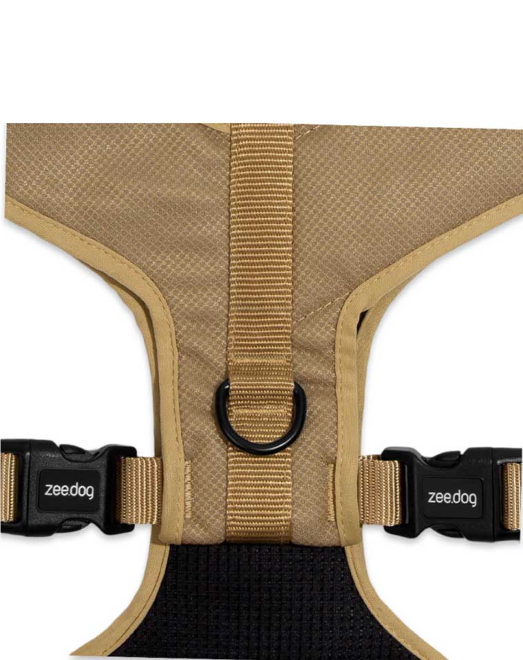 ZeeDog Arnés Air Mesh Sand es un arnés diseñado para perros con materiales de calidad. También conocido como Mesh Plus, no se calienta ya que tiene un tejido aireado que deja pasar el aire, refrescando la piel y el pelo del perro. Ajustable en cintura y con posición para sujetar la correa. Se recomienda evitar el contacto con superficies rugosas o cortantes como mordeduras, por ejemplo.